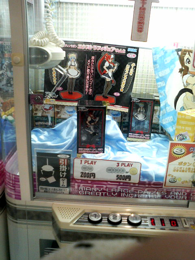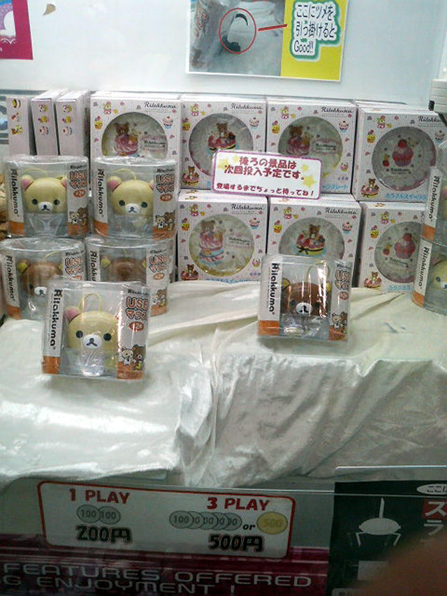 特に箱系は横穴が開いていて、そこにアームを入れて動かすのでしょうが、アームを入れてもびくともしないものが多く、ましてや下降制限がつけられていて、箱が倒れたら店員に置きなおしてもらわないといけないので物によっては呼ぶ回数もハンパではないのでなんだか厳しくなってきたなと思いました。