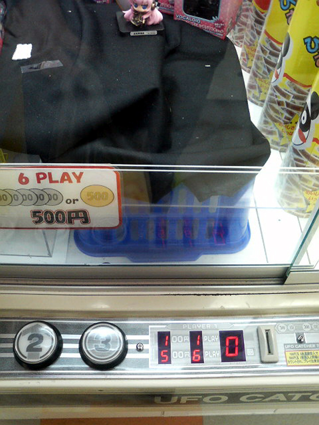 特に箱系は横穴が開いていて、そこにアームを入れて動かすのでしょうが、アームを入れてもびくともしないものが多く、ましてや下降制限がつけられていて、箱が倒れたら店員に置きなおしてもらわないといけないので物によっては呼ぶ回数もハンパではないのでなんだか厳しくなってきたなと思いました。